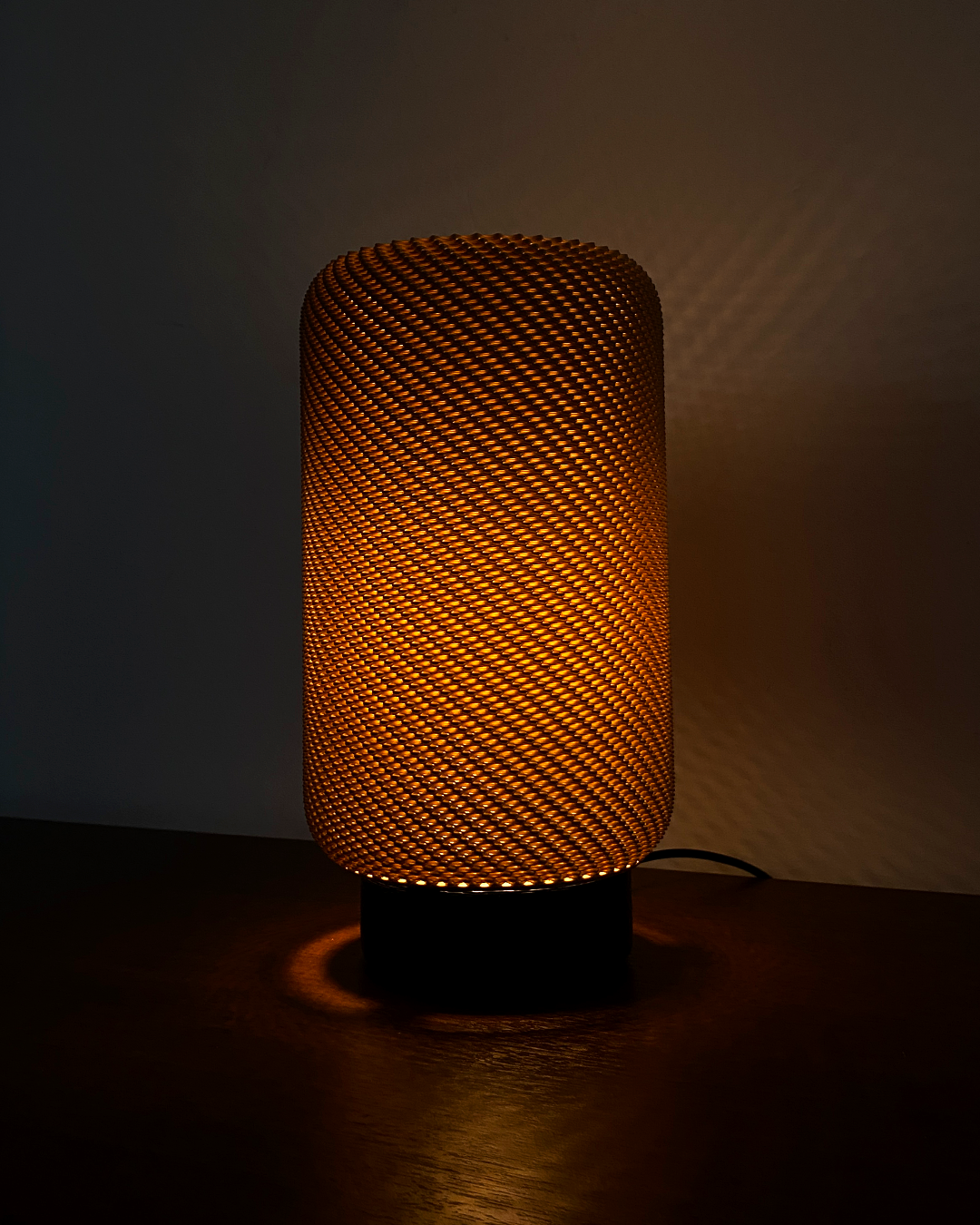 Fabricada en plástico con impresión 3D, esta lámpara combina durabilidad y estilo, convirtiéndose en un elemento decorativo que complementa diversos ambientes. Su tecnología de iluminación LED asegura un consumo eficiente de energía, lo que la convierte en una opción sostenible y económica para iluminar tu hogar.
